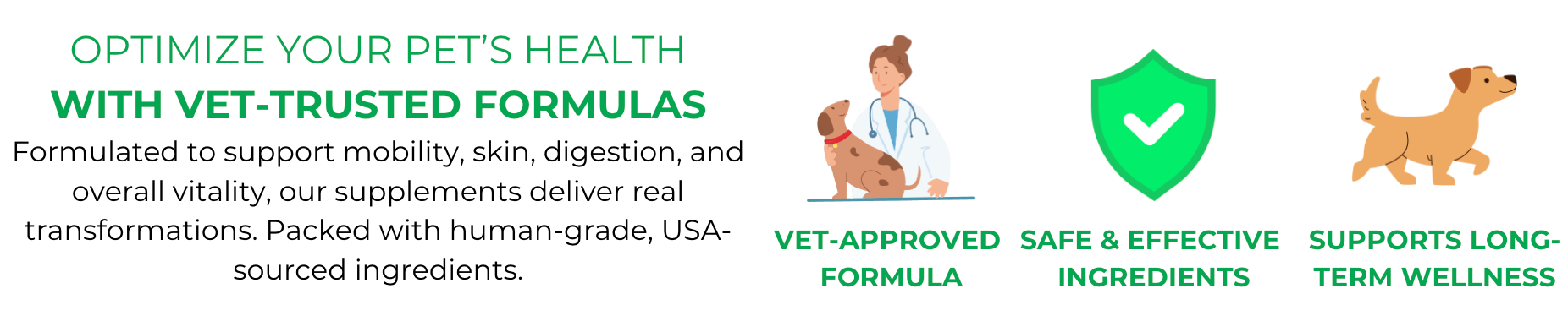 Formulated to support mobility, skin, digestion, and vitality, our vet-trusted supplements deliver real transformations.